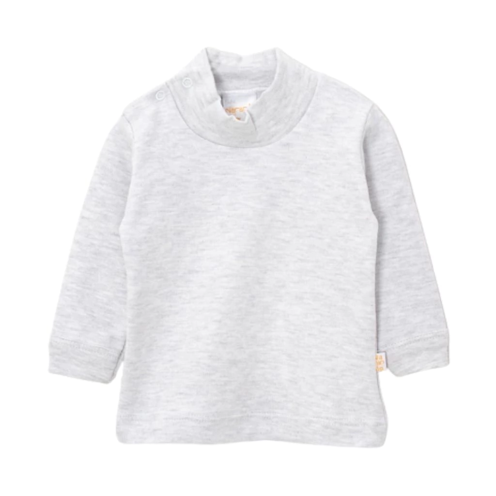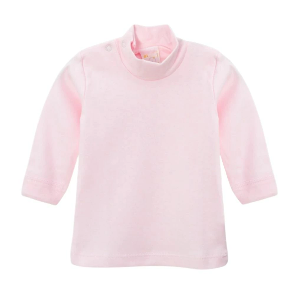 Remera de algodón manga larga con cuello media polera en ribb al tono