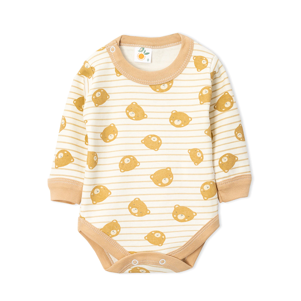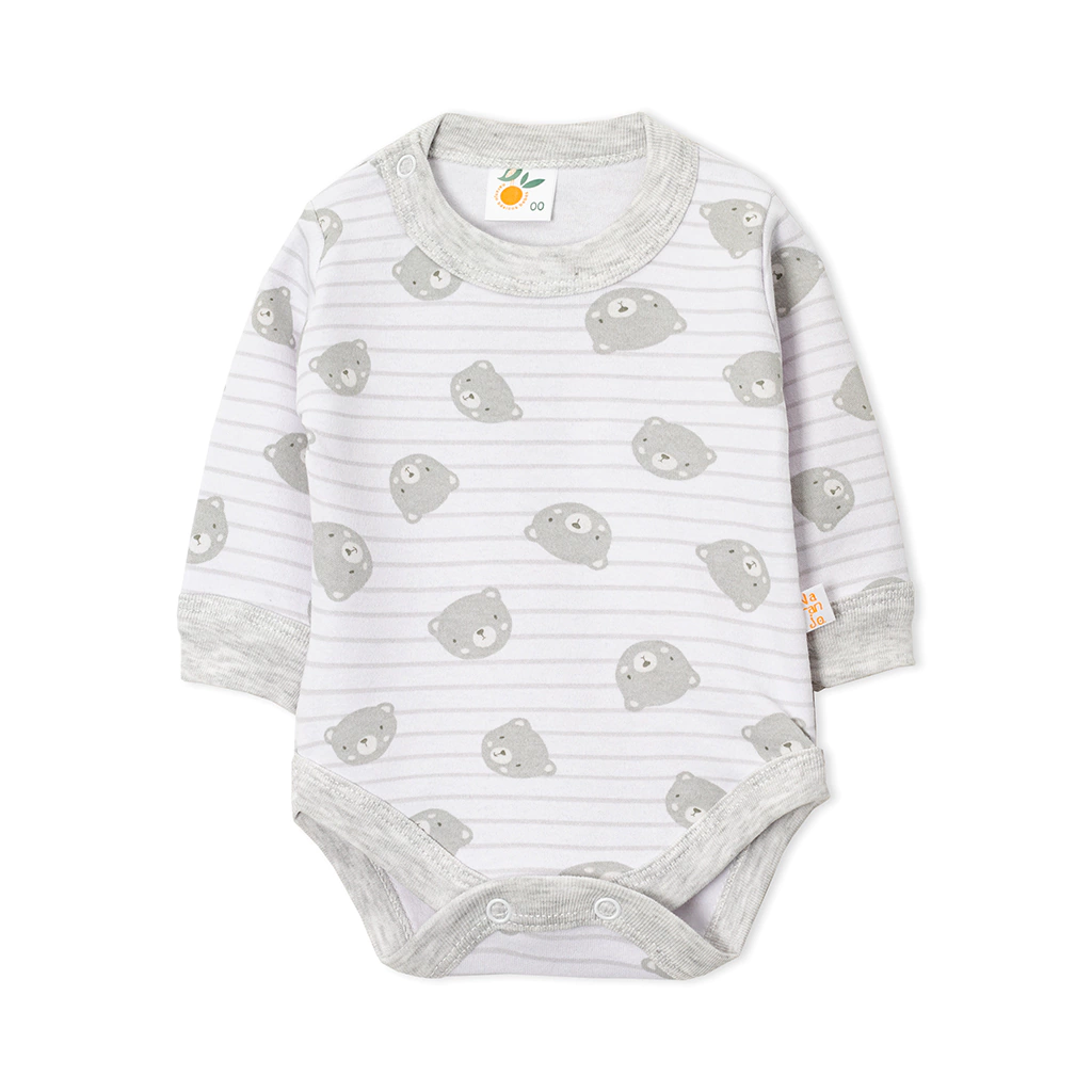 Body manga larga en algodón estampado rayado, cuello combinado en ribb y broches