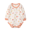 Body manga larga en algodón estampado, cuello en ribb combinado y broches
