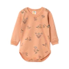 Body manga larga en algodón con estampa central, cuello en ribb al tono y broches